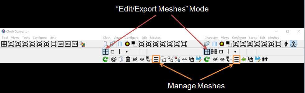 Clicking the "Manage Meshes" button pops up a dialog window as follows: