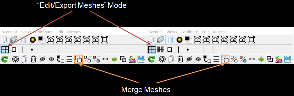 Clicking this button starts one of the following processes if there are any visible meshes.