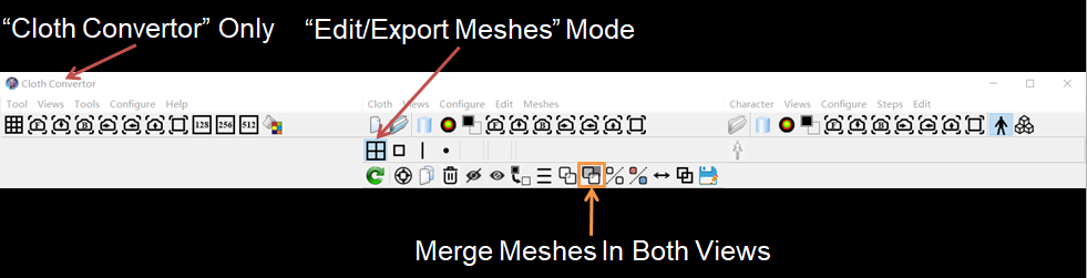 This button is only shown in the middle scene of the Cloth Convertor tool. It is used to merge sim. meshes and render meshes respectively to one mesh.