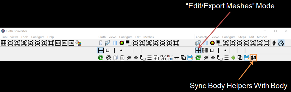 Clicking this button synchronizes body helpers with body of an interchangeable base character.