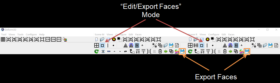 Clicking this button exports selected faces, or all visible faces if no faces are selected, to a file using the same configuration and process used for meshes.