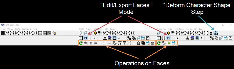 By clicking the "Edit/Export Faces" button, you set a tool to the "Edit/Export Faces" mode. If you are using the Character Convertor or Cloth Convertor tool, you need to click the "Step 2: Deform Character Shape" button first.