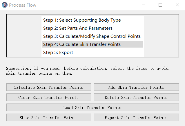Click the "Calculate Skin Transfer Points" button to clear all current skin transfer points if they exist, and then calculate them.
