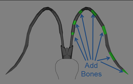 If you want to make some cloth vertices rigid, or add a bone to the cloth as shown in the following figures: