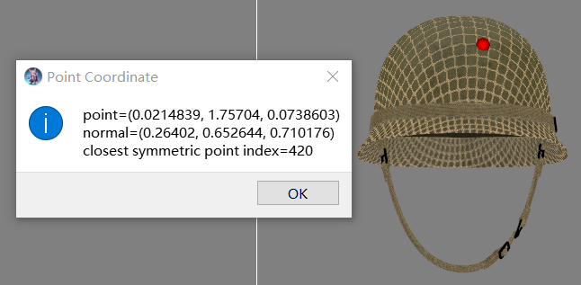 Set the index of vertex and its mesh to check, close the dialog, then another dialog window pops up showing the result, and the vertex is displayed as a red ball: