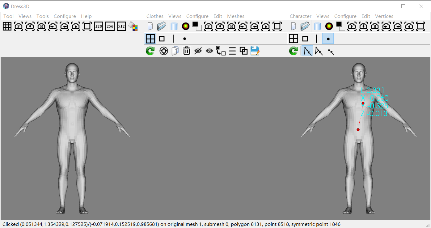The right mouse button is used to select and un-select vertices, and check vertex information.