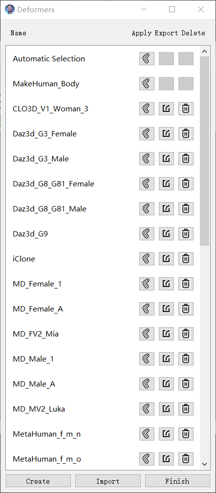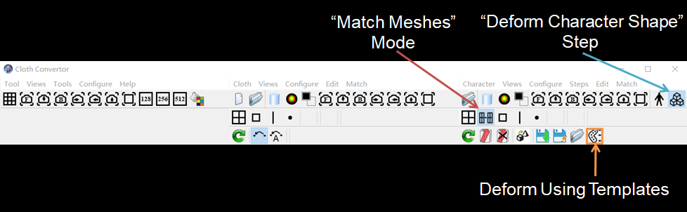 Clicking this button starts the process of deforming using a template, and creating, exporting, importing and deleting a template. If you are using the Character Convertor or Cloth Convertor tool, you need to click the "Step 2: Deform Character Shape" button first.