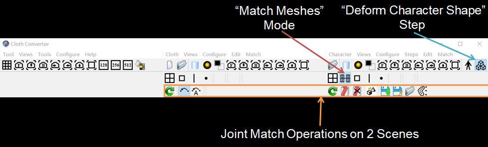 Clicking this button sets a tool to the "Match Meshes" mode. If you are using the Character Convertor or Cloth Convertor tool, you need to click the "Step 2: Deform Character Shape" button first. If you are using the Deform3D tool, you need to have only one isolated mesh visible in the right scene first.
